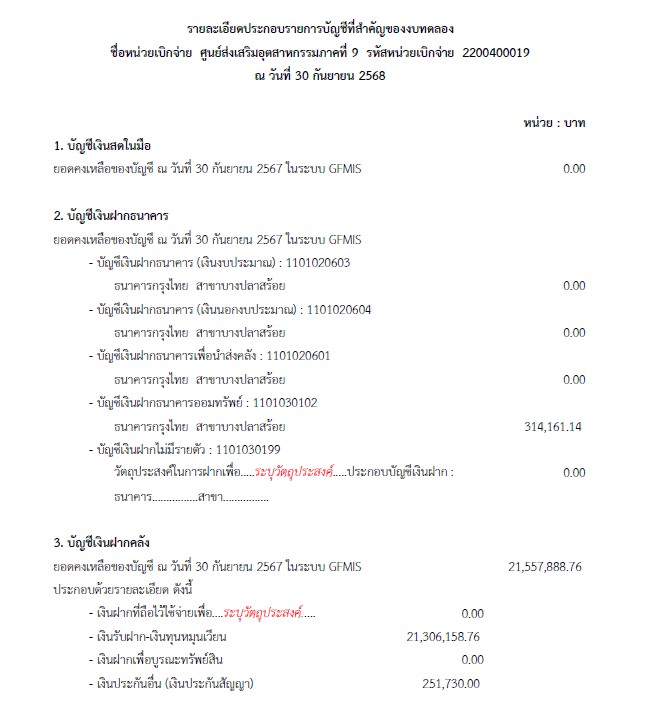 การแสดงรายละเอียดประกอบรายการบัญชีที่สำคัญของงบทดลอง ประจำเดือนกันยายน 2568 เอกสารแนบ